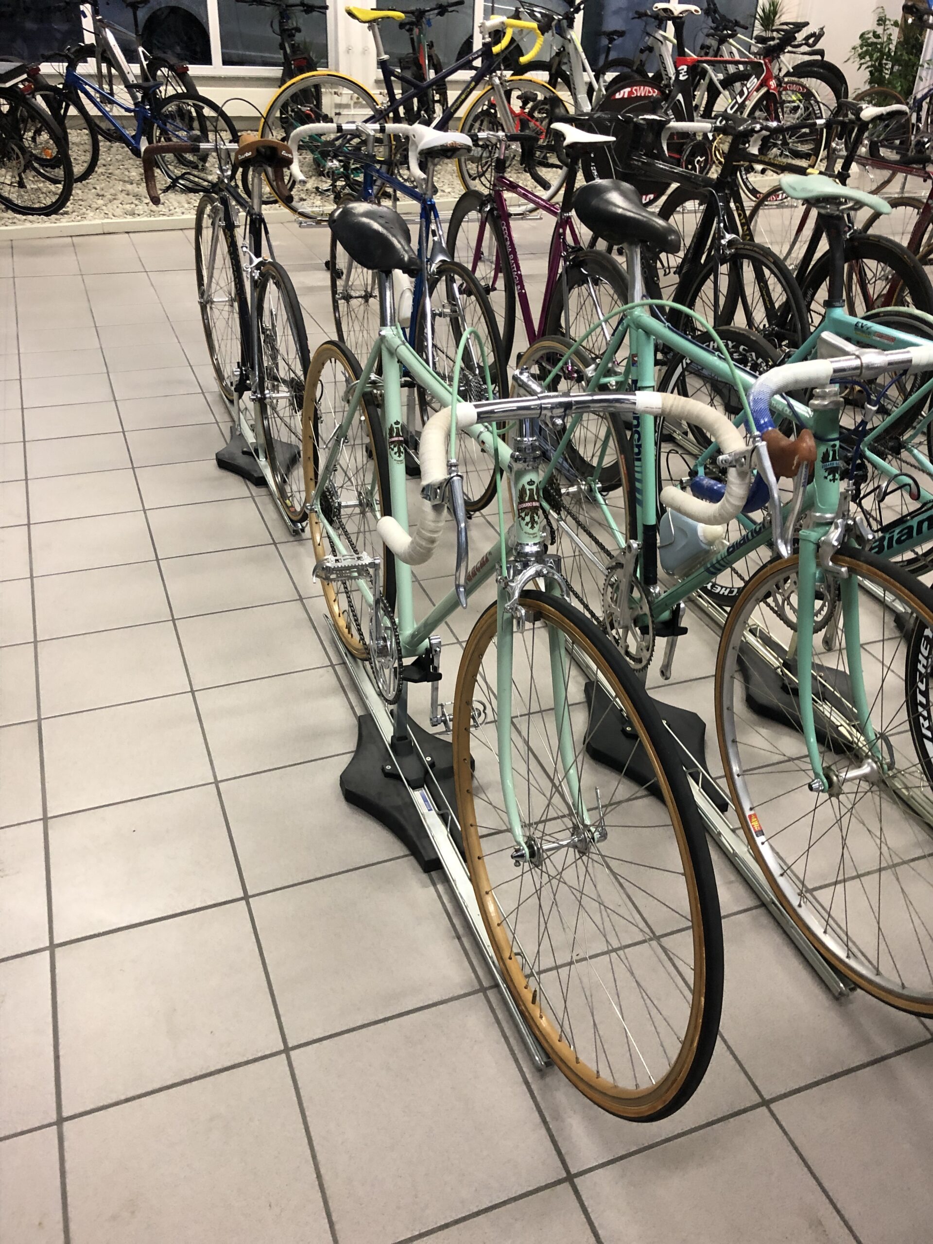 Sein ältestes Fahrrad ist ein 1948er Bianchi aus dem Team Fausto Coppi. Auf diesem Rad wurde außerdem die erste Campagnolo-Schaltung montiert. Da war nichts mit bequemer Schaltung am Unterrohr oder wie heute üblich am Lenker. Der Fahrer musste weit nach hinten greifen um die 5 Gänge mit einem Umwerfer schalten zu können.