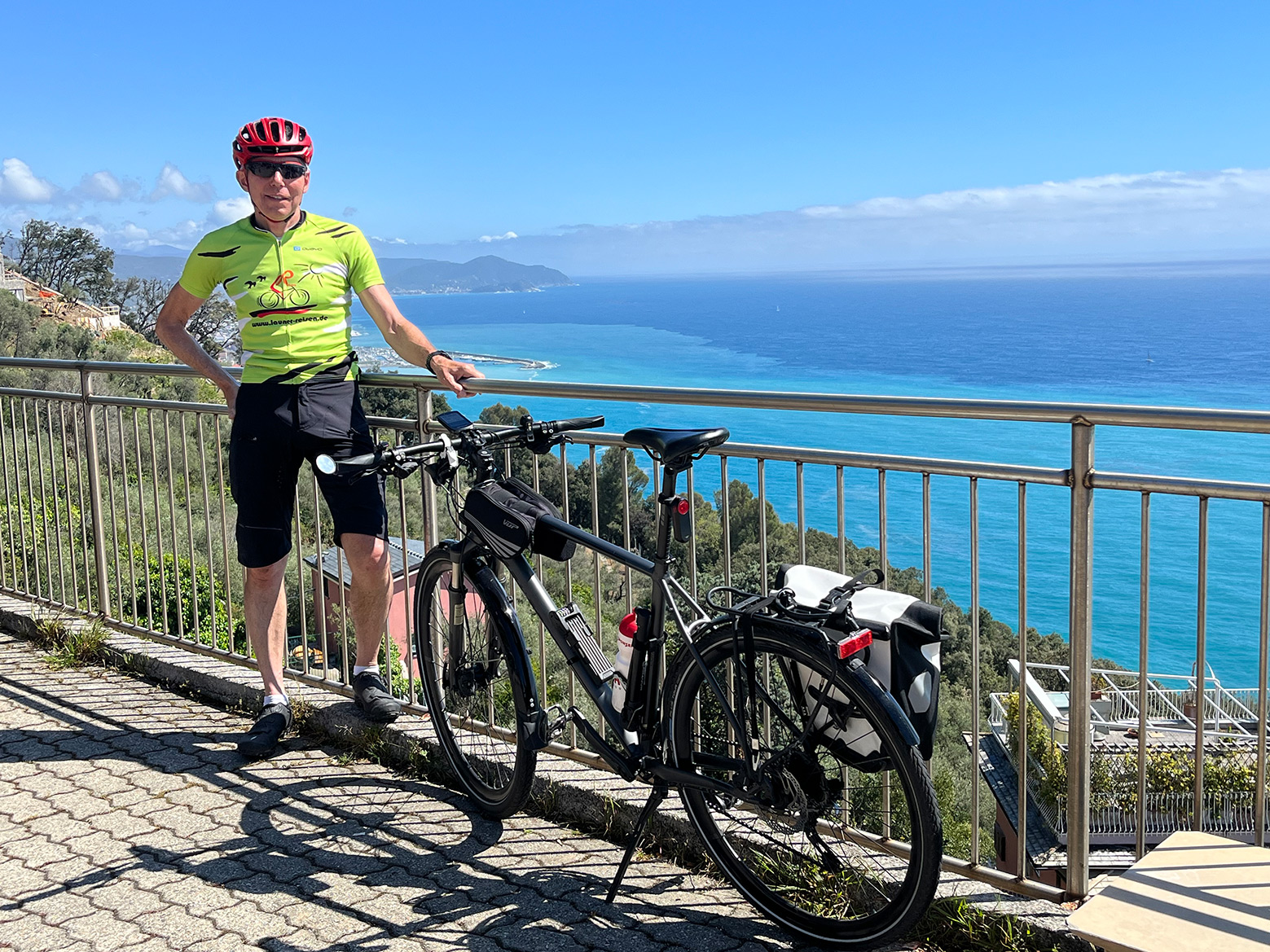 Liebes Launer-Team, viel zu schnell ging die Radreise Cinque Terre zu ende. Die Mittelmeerküste zwischen Genua und La Spezia dürfte zu den schönsten Landschaften in Italien gehören. Die Orte der Cinque Terre sind ein Bilderbuch. Bekannt und beliebt bei vielen Touristen. Während unserer Reisezeit hielt sich der Touristenandrang noch in Grenzen, in der Hochsaison dürften diese Orte total überlaufen sein. Die Radtouren sowohl an der Küste, teilweise auf stillgelegter Bahntrasse sowie ins Hinterland mit phantastischen Tiefblicken auf die Mittelmeerküste und entgegengesetzt auf die Ausläufer des Apennin mit teils schneebedeckten Gipfeln waren grandios. Die vielen Steigungen waren durchaus auch von "Biobikern" zu bewältigen, obwohl ihnen so einiges abverlangt wurde.